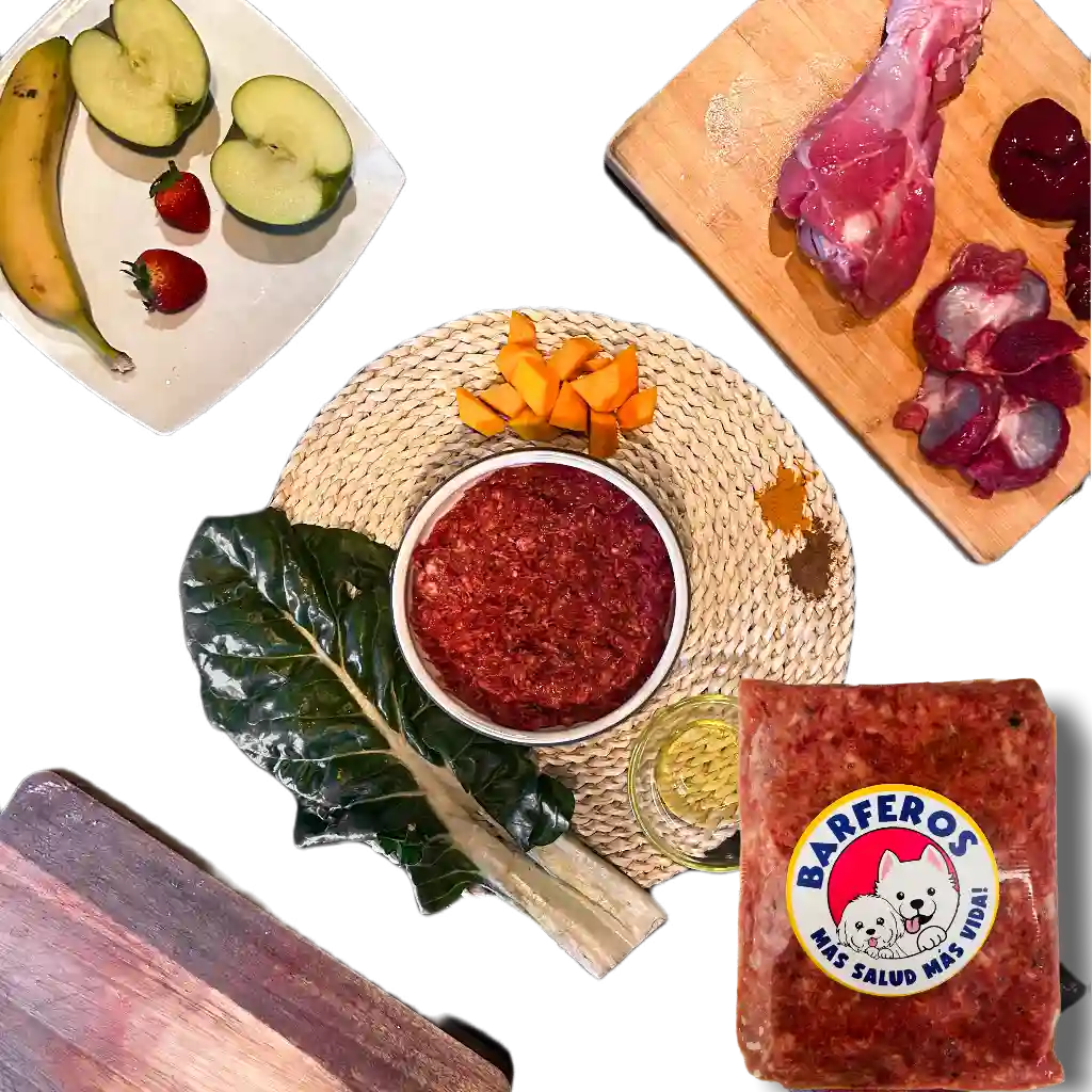 • 50% Hueso Carnoso variado (truto, alas y cogote de pavo o de pollo) que aporta un equilibrio perfecto de minerales y calcio.